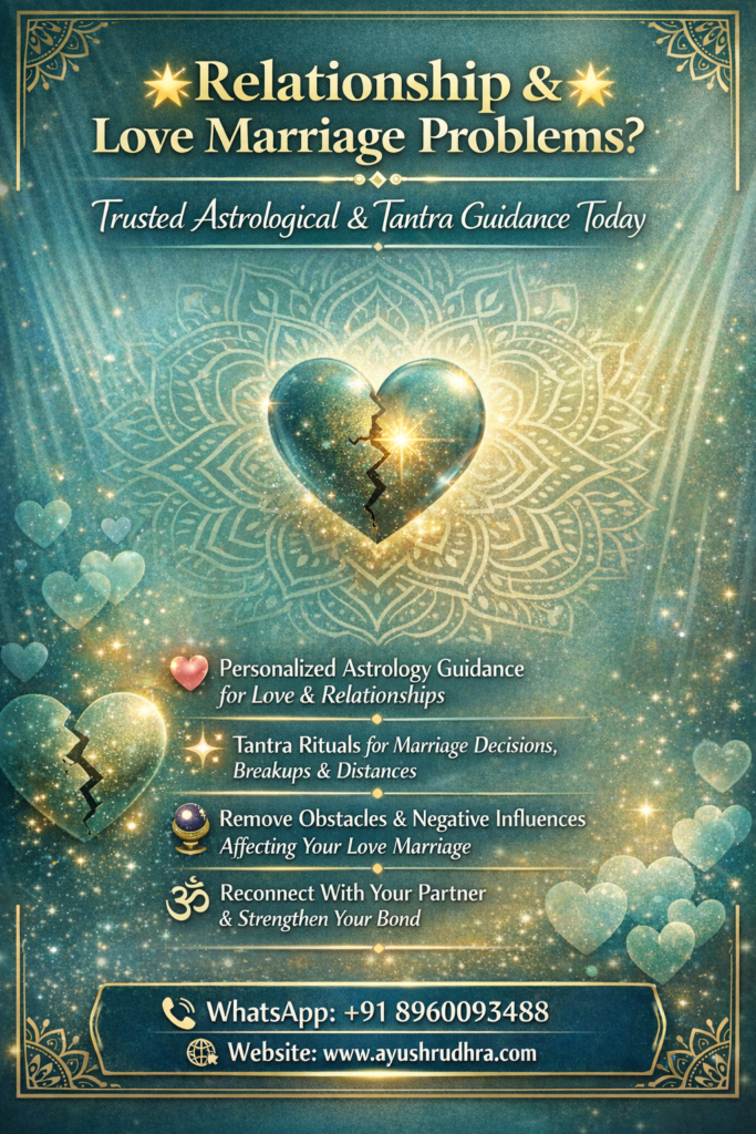 Trusted Astrological and Authentic Tantra Guidance helps uncover the deeper reasons behind relationship and love marriage problems and provides a structured path toward harmony, clarity, and long-term stability.